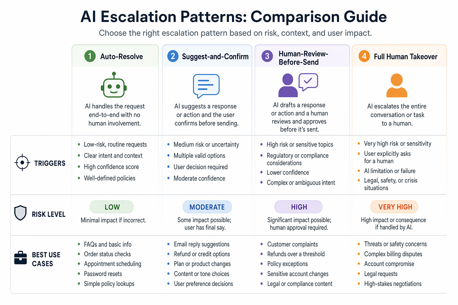 Most AI products need only four escalation patterns. If you cannot name which one you are using in each flow, your product is improvising.